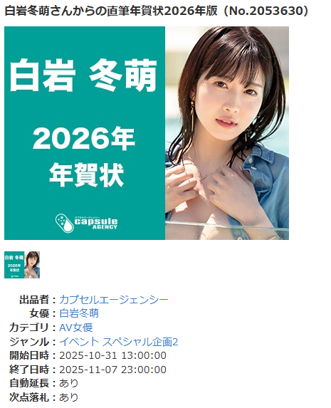 女優さんは「事務所で年賀状を書く」だけでしかもカプセルはFANZA提携+自社オークションのW導線があるから、